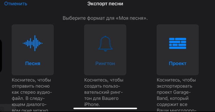 После обрезки (или без неё, если подходит вся песня, но не длиннее 30 секунд) нажмите кнопку сохранения или экспорта. Приложение создаст файл в формате M4R, совместимом с iOS. Название мелодии может быть указано автоматически, но можете его изменить.